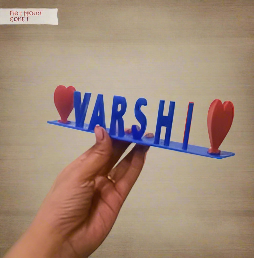 Create a unique personalized 3D flip name display featuring two names—one visible from the left and the other from the right—crafted from durable PLA material. This design includes charming red heart accents to balance uneven name lengths. The price covers up to five letters, with an additional charge per extra letter. Choose store pickup with a 10+ day production timeline or home delivery within 3-10 days across India (courier charges apply). Simply order online and share your desired names or photo via WhatsApp for a customized keepsake.